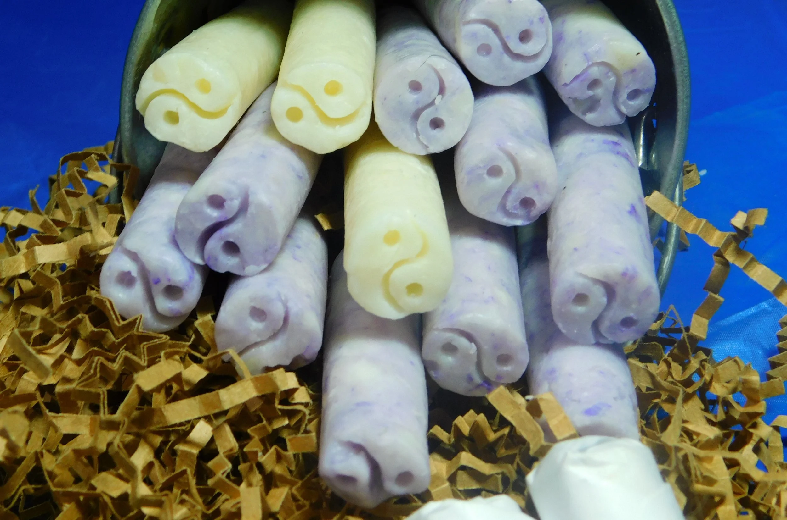 We make every batch of soap by hand, and that's why each bar of soap or hand (rolled) soap is unique.